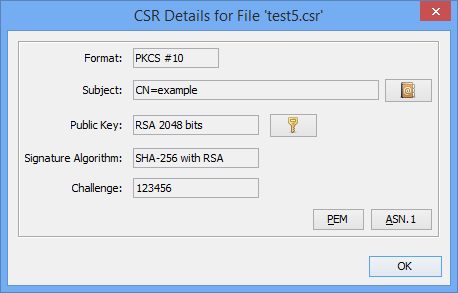 The new feature "Examine CSR" displays the details of a CSR file. It works like Examine Certificate or Examine CRL known from previous versions.
