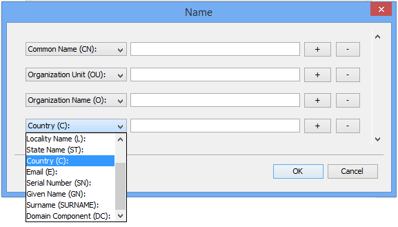 In older versions of KSE the dialog for entering the Distinguished Name (DN) had a strict scheme of 7 commonly used name components (CN, OU, O, L, ST, C, E) in the commonly accepted order. It was not possible to use other name components like for instance SerialNumber (SN). Also, it was not possible to create a DN with more than one occurrence of the same attribute (especially OU is often used more than once in a DN).