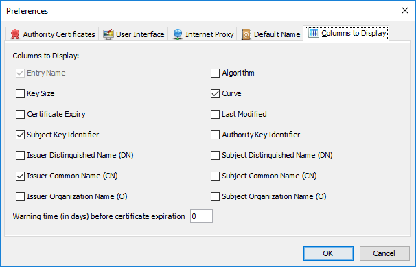In previous versions KSE showed a fixed set of information for keystore entries: Entry name, algorithm, key size, certificate expiration date and last modification date. If you wanted to find for example a certificate with a specific issuer DN the you would have to open every certificate in the keystore.