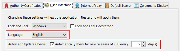 In previous versions KSE always used the system language for its UI (if there was a translation for it). Now you can explicitly choose between: