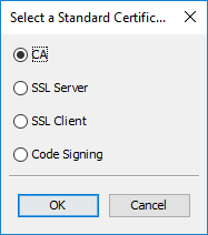 When generating a certificate it is a relatively cumbersome task to add all the extensions one by one. With this new feature you can add a basic set of commonly used extensions for four different certificate types.